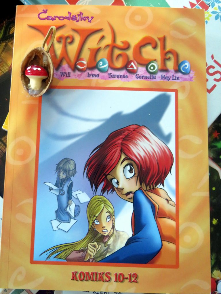 Bez knížek bych nemohla žít , tak jsem si ještě vypůjčila další díl Ateliéru špičatých klobouků. Na fotce je spolu s mangou kamínekm který mi malovala moje malá dcera Mei, náramek od jedné kamarádky, vločka od druhé. Radosti od přátel a rodiny jsou ještě lepší než od sebe :-).